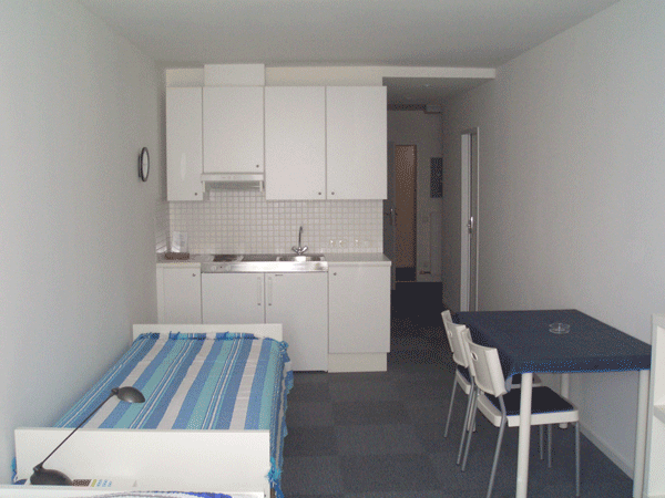 zur Komplettausstattung mit Miniküche, Dusche und WC im Zimmer (ca. 35 m2)